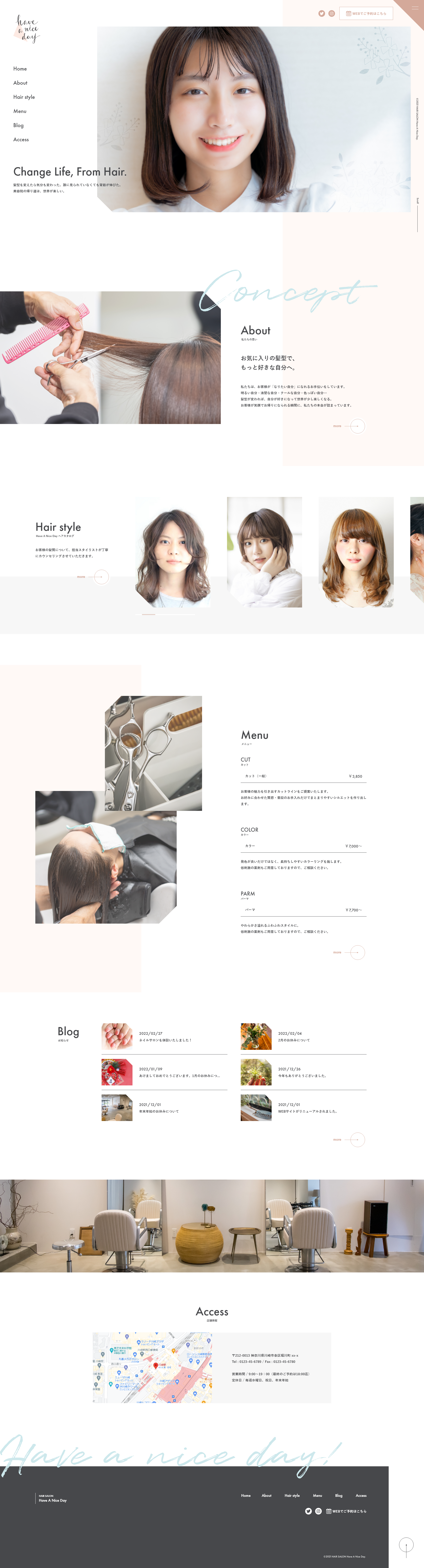 美容院のWEBサイトトップデザイン