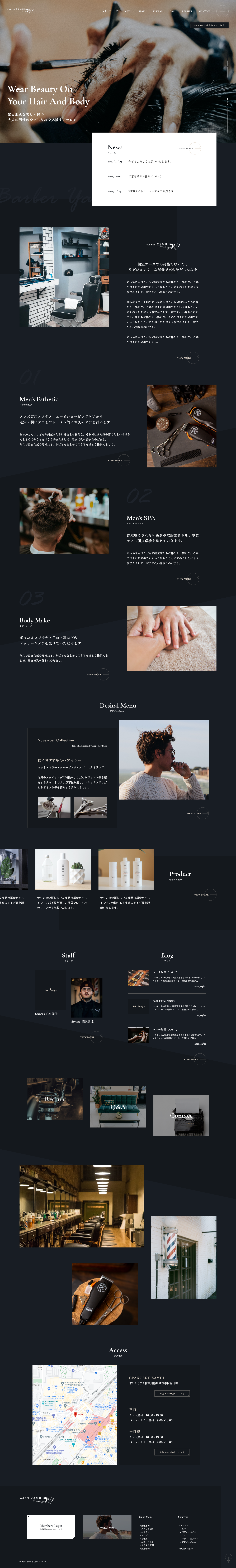 理髪店のWEBサイトトップデザイン